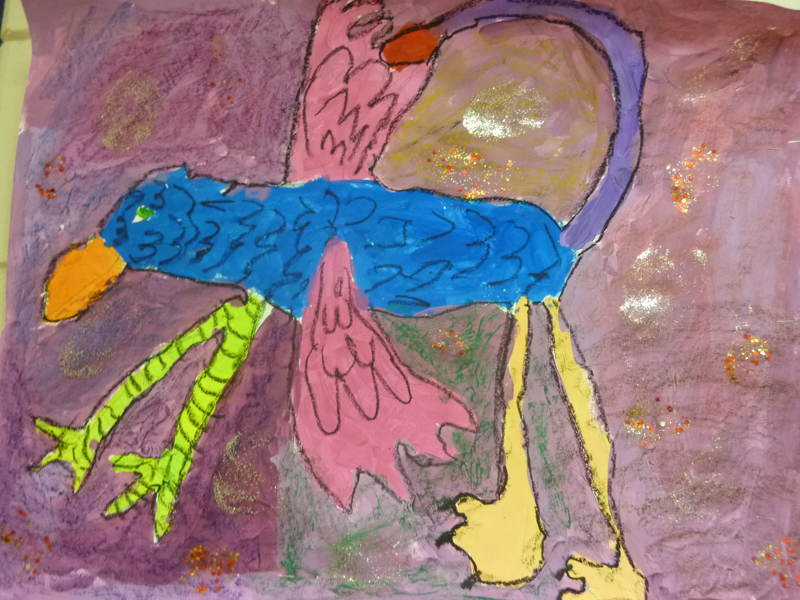 artwork as inspiration to create their own imaginary animal. Students learned that Marc Chagall used his
